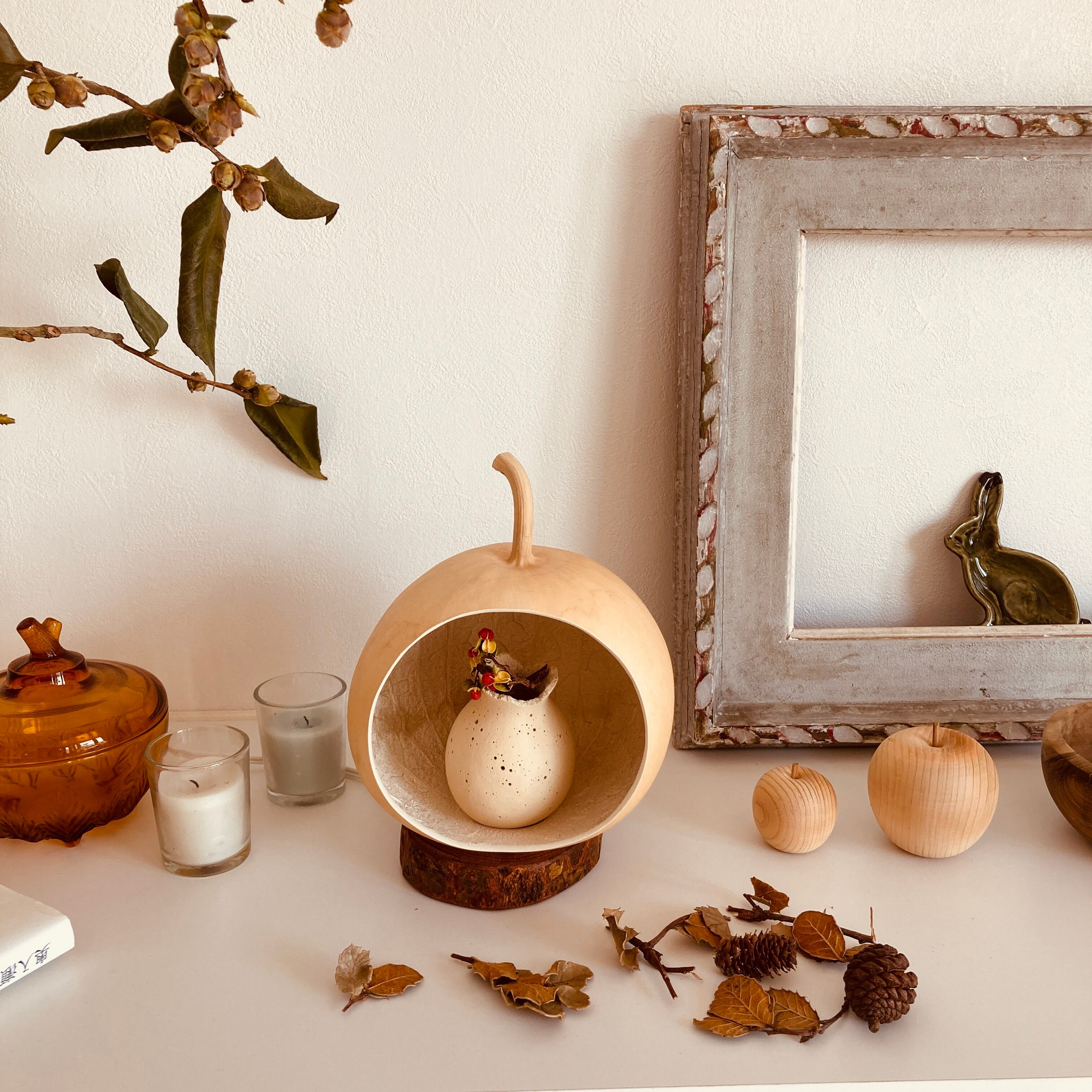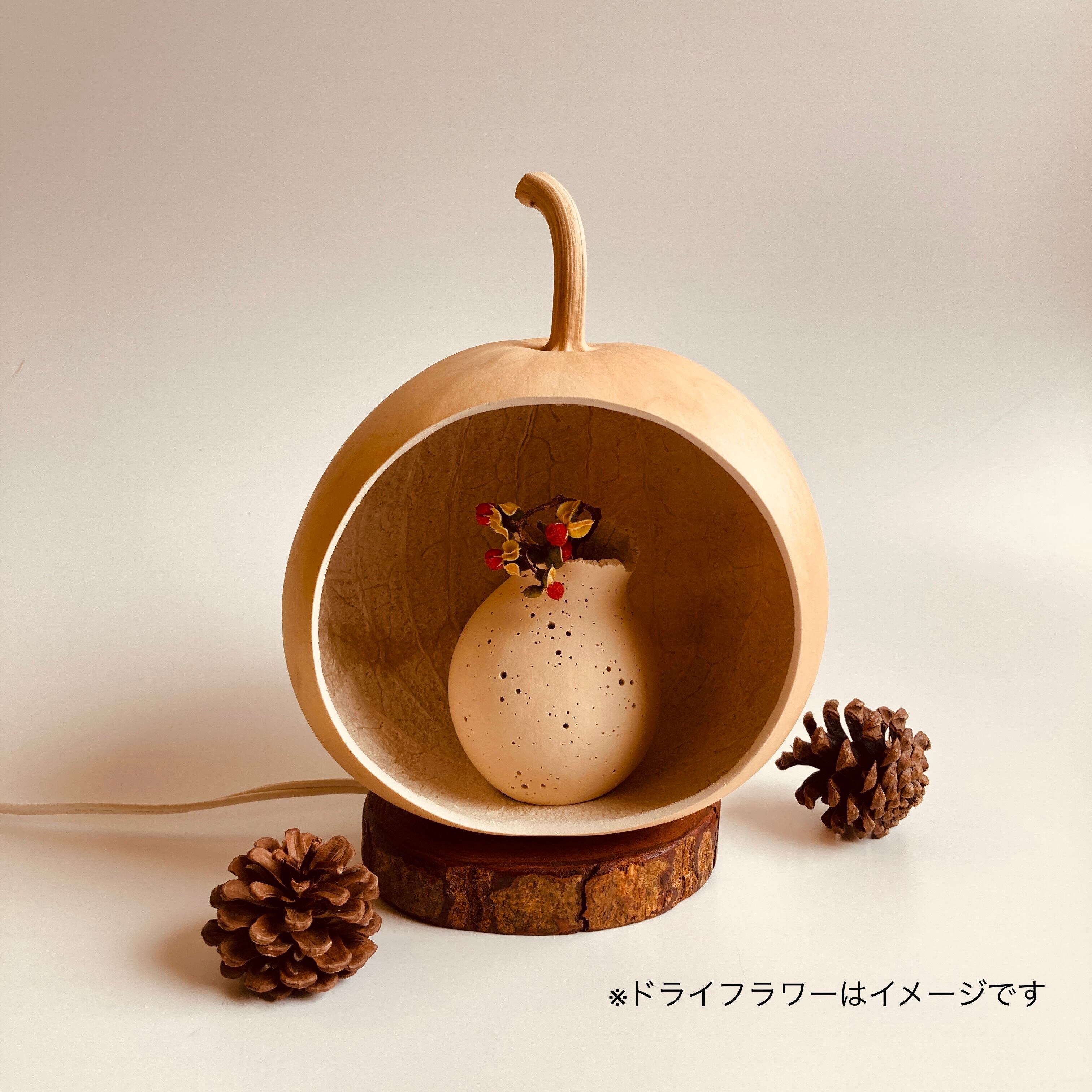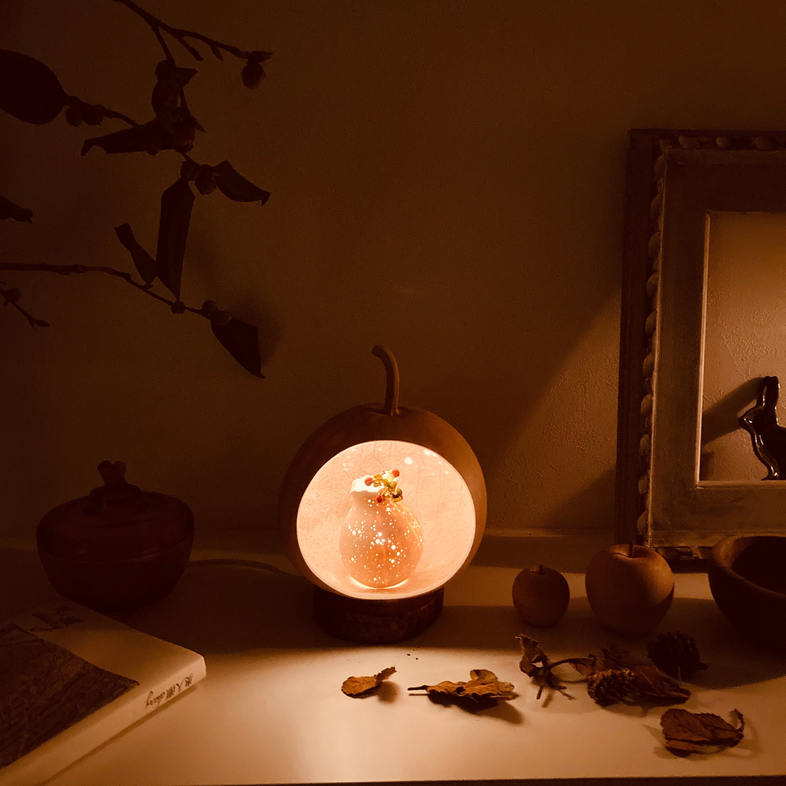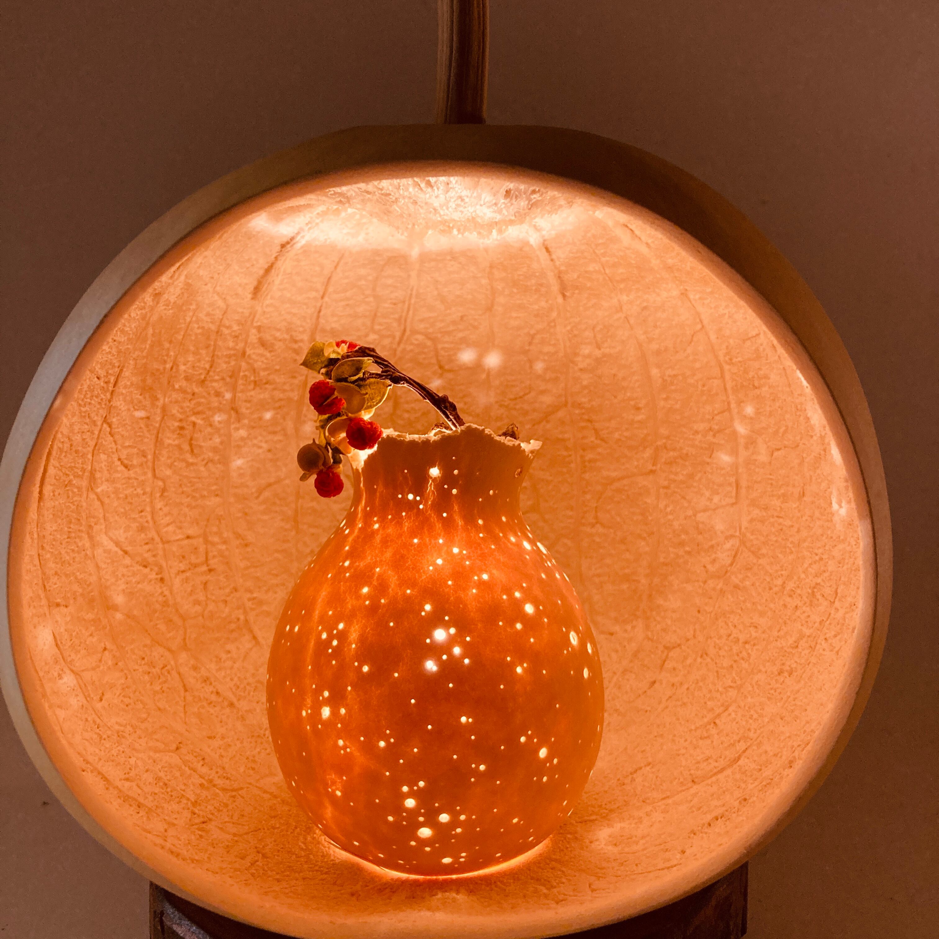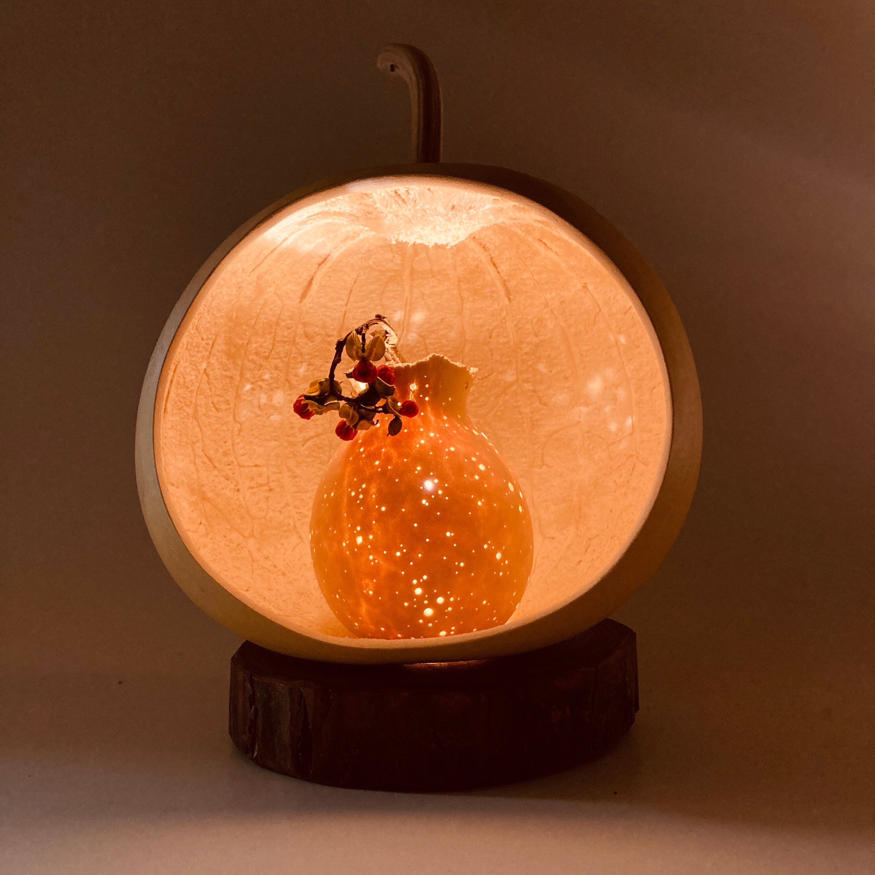 ひょうたんの中に、小さなひょうたんランプがもうひとつ。